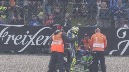 También tiene perdedores con nombre propio este gran premio. El primero, Valentino Rossi, que se fue al suelo cuando apenas acababa de iniciarse la segunda carrera. Iba en primera posición. Y vuelve a casa con un cero: “He cometido un error de principiante. Era muy rápido en esas condiciones. Quería tirar una vuelta más para ganar ventaja y controlar la situación, pero tiré demasiado”, asumió. La vuelta anterior había caído de la misma manera Dovizioso, que le seguía de cerca. El asfalto estaba mojado y este neumático delantero no advierte a los pilotos si están sobrepasando el límite. No serían los únicos que acabarían rodando por la grava. Hubo muchos más.