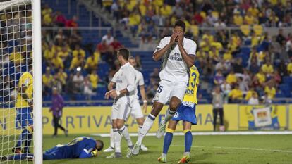 El Madrid ha conseguido dejar la portería a cero sólo contra la Real Sociedad en la primera jornada y contra el Espanyol el domingo pasado. Villarreal y Las Palmas (junto al Sporting de Portugal) son los equipos que más le han rematado al conjunto blanco. Cuatro de los siete remates del Villarreal el miércoles en el Bernabéu fueron a puerta (uno entró) y de Las Palmas, seis de ocho. “Falta de concentración y falta de todo”, dijo anoche Zidane que había sido el gol del empate de Araujo. En el primer tanto, Varane despeja como puede un centro de Momo y Tana lo remata prácticamente solo. En el segundo, cuando Vicente levanta la mano para pedirle a Tana el balón, está fuera del área. Isco, a dos metros de él, ni le encima ni amaga con hacerlo y Vicente entra en el área del Madrid completamente sólo. Asiste a Araujo con una dejada de cabeza sin oposición (Varane está a dos metros) y Sergio Ramos llega tarde a cerrar. Otro despiste después del que acabó en el empate del Villarreal (intento de ruleta fallado de Varane, remate de Trigueros y mano de Ramos).