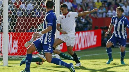 El Sevilla, como en la Liga de Campeones frente al Lyon, mejoró en la segunda mitad. Vitolo, enorme, se echó al equipo encima y Vázquez apareció para dar muestras de su calidad. Con ese aire desgarbado, parece que el juego no va con él, pero acaba siendo casi siempre importante. Mateu no vio el penalti de Escudero y el Sevilla mereció adelantarse en el marcador. Ganso se sacó un taconazo sublime para que Ben Yedder marcara. Entonces se inició una gran pelea entre dos equipos con alma, que nunca se rinden. El Alavés, muy defensivo, encontró oro en un saque de esquina que remató Laguardia. Como en tantas otras ocasiones, estalló Nervión empujando a su equipo. El Sevilla dio un arreón y marcó un golazo, de tacón y tras jugadón de Vitolo. Fue Ben Yedder. El punto final a un partido de locos, con una calor asfixiante, con Mateu en la banda lesionado y Nervión festejando una victoria más. Y ya van cinco (cuatro en Liga y una en Liga de Campeones).