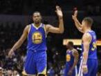 Golden State Warriors: Curry (26), Klay Thompson (11), Kevin Durant (27), Draymond Green (18), Pachulia (2) –equipo inicial-; David West (2), Looney (0), Iguodala (2), Livingston (2), McGee (2), Varejao (1), Clark (5) y McCaw (2).