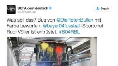 Varios botes de pintura impactaron sobre el autocar del RB Leipzig durante su desplazamiento al estadio de Leverkusen para jugar y ganar 2-3 el viernes pasado. Rudi Völler el director deportivo del Bayer se apresuró a disculpar el comportamiento de sus aficionados. Ya hace un par de años se había manifestado a favor de la llegada de Red Bull y el Leipzig a la Bundesliga. “Enriquecerán nuestro fútbol”. Su equipo recibe cada año 25 millones de euros procedentes de Bayer, la multinacional farmaceútica que fundó el club en 1904.