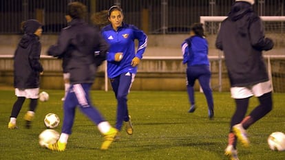 Una lluvia fina moja el césped del Olímpico de Hortaleza, situado en el distrito del noreste de Madrid. La molesta cortina de agua no achanta a un grupo de niños que traen de cabeza a sus entrenadores, que se dejan la voz en intentar reconducir el rebaño. Fuera del modesto campo empiezan a llegar las protagonistas del siguiente entrenamiento, futbolistas que lucen un llamativo escudo en su vestuario: una bota de fútbol con un tacón incrustado. No cuadra el atuendo de las jugadoras con el modesto escenario de equipo de barrio. Menos aún cuando una de las primeras en aparecer con la equipación del Club Deportivo Tacón es Laura del Río, 34 años, exinternacional —39 goles en 40 partidos— con una larga experiencia tras haber jugado en España, Alemania, Inglaterra y la National Women´s Soccer League estadounidense.