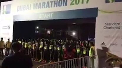 Antes de que amaneciera, para evitar el calor, se dio la salida en el paseo marítimo de Dubai y antes de que se diera cuenta, Bekele estaba en el suelo, arrollado por la masa de atletas que partieron pegados a él. Se levantó y comenzó a correr el etíope, pero nunca pudo alcanzar al grupo de cabeza, que aceleraba sin él. Nada más pasar la media maratón, se retiró, justo cuando amanecía. Aminoró el paso, que convirtió en un paseo, se agachó, se masajeó el gemelo izquierdo, que tenía acalambrado, y se apartó. “Estaba en la misma forma al menos que en Berlín [en septiembre pasado: 2h 3m 3s, a solo seis segundos del récord del mundo se quedó], pero no podía correr a ritmo de récord con una pierna acalambrada”, escribió el atleta en su Facebook. “Nos vemos en abril, en el maratón de Londres”.