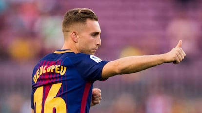 Decidió Valverde poner de inicio a Deulofeu, que ocupó la posición de Neymar, desertor de bolsillos llenos que ya juega para el PSG. Y el extremo, que ha tenido que demostrar su valía en el Everton, Sevilla y Milan para cobrarse un puesto en el primer equipo azulgrana, argumentó que su fútbol es de altos vuelos, que tiene dribling, velocidad y puntería. Así, en un santiamén, marcó un gol que celebró con la ilusión que tiene uno al poner su nombre en el buzón de casa. Le bastó con empujarla, pero no le pareció suficiente porque antes de que acabara el primer acto regaló dos caramelos que Busquets -con un sensacional disparo desde fuera del área que le quitó las telarañas a la escuadra- y Messi -con un remate de primeras como habitúa cuando se la ponen rasa desde la izquierda- no desaprovecharon. No había resistencia y el balón corría por cuenta de las botas azulgranas, diligente y preciso, una seña de identidad que quiere recuperar Valverde porque se había perdido el pase intermedio para entregarle el balón y las responsabilidades al tridente. Pero Neymar ya no está y desde el club cala el mensaje de que se debe compactar al equipo. Consciente o no, ya lo advirtió el entrenador en su primer día en el Camp Nou: "Quiero recuperar el juego de medios".