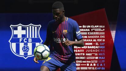 El Barcelona presenta al extremo francés por el que pagó 105 millones fijos, más 42 en variables, al Borussia Dortmund