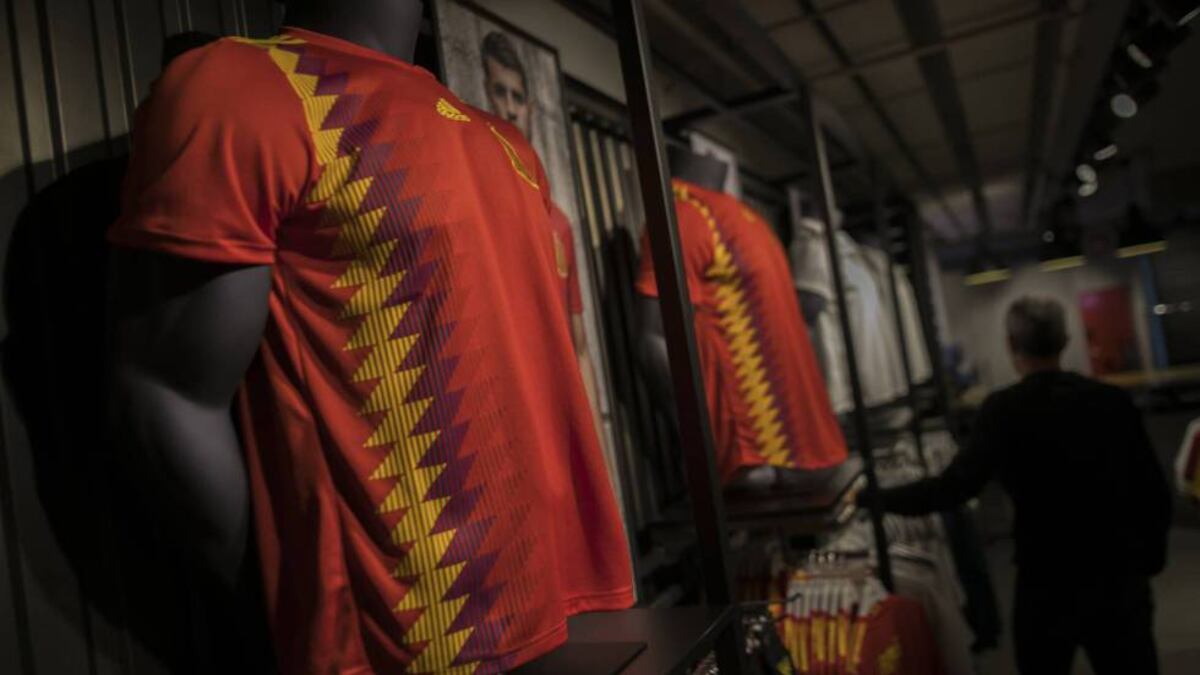 La nueva camiseta de la selección, en la tienda Adidas de Gran Vía, en Madrid © CARLOS ROSILLO EL PAÍSFoto: atlas | Vídeo: ATLAS