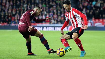 En el banquillo del Eibar, Ander Capa, que en junio de 2018 se incorporará a la plantilla del Athletic, que lo fichó tras el partido disputado en Ipurua sin saber hasta última hora que había ampliado un año su contrato con el Eibar para que sacase rendimiento económico, debió pensar que su técnico temía que mirase a las musarañas en vez de enchufarse al partido. “Si se enchufa es el amo, si no se enchufa mira a las musarañas”, dijo en la jornada previa. Fuera por eso o porque el técnico de Eibar refrescó el equipo (junto a Capa ase alojaron en el banquillo Dani García, Jordán y Charles), Capa vio como el chico para todo, Rubén Peña, cumplía su misión con más acierto que errores. Pero la defensa del Eibar estaba generosa. Orellana asustó a Herrerín a los dos minutos viéndole adelantado y enseguida el equipo azulgrana le consoló con un error de Juncà que equivocó a Dmitrovic. Cuando metía Williams la puntera a puerta vacía, apareció el manotazo del portero serbio ara evitar el gol. La lotería de la solidaridad siguió girando y un despeje hacia atrás de Etxeita lo salvó in extremis Herrerín, más exigido por sus defensas que por los delanteros del Eibar. No era justa esa desigualdad en los errores, así que entre Juncà y Arbilla se inventaron un error que dejó solo a Williams aunque Dmitrovic esta vez con el pie le arrebató el balón.