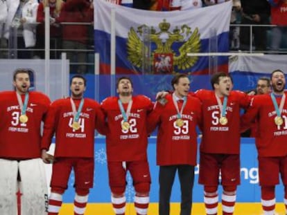 En el último evento de los Juegos, la final de hockey sobre hielo masculina, el equipo ruso se consagró campeón al vencer 4-3 a Alemania y desafió al COI cantando el himno de su país durante la entrega de medallas. El gesto suponía una actuación que viola las normas de neutralidad del COI.