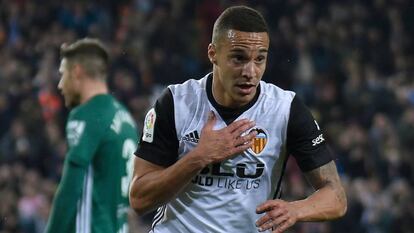 Rodrigo pasó a cuchillo la frágil defensa bética una vez consumidos los primeros 20 minutos de partido. Una salida de Mandi, capitaneando un ataque verdiblanco en la línea de tres cuartos en campo contrario, fue interceptada por Gayà que rápidamente tocó para Guedes. El portugués envió un pase maravilloso en diagonal sobre el acelerón de Rodrigo, que aprovechó el desajuste defensivo tras la salida de Mandi para fusilar a Adán, zafándose de Amat y de Bartra. Rodrigo, que quiere convencer a Lopetegui para embarcar rumbo a Rusia, marcó su décimo gol en Liga.
