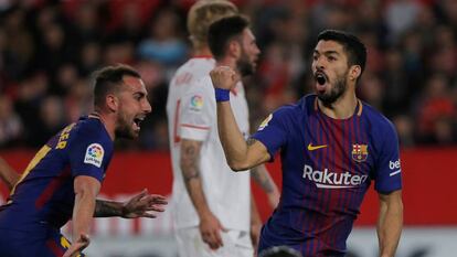 Al Barcelona le alcanzó con un abrir y cerrar de ojos para despertar al Sevilla. Nadie daba un duro por el líder cuando comparecieron Luis Suárez y Messi y con solo dos remates en 47 segundos consiguieron tantos goles como el equipo de Montella en 21 tiros en 87 minutos frenéticos en el Sánchez Pizjuán. El partido olía a goleada para el Sevilla y acabó con un empate del Barcelona. El resultado avala el poderío de los dos delanteros azulgrana al tiempo que el juego compromete al equipo de Valverde, que resucitó en plena Semana Santa, para mantener su condición de invicto en la Liga.