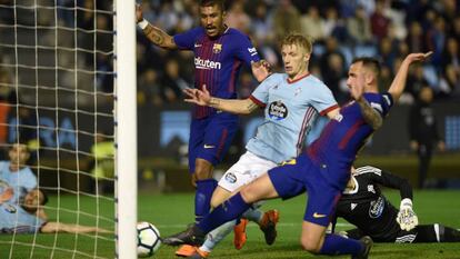 Entró Messi al campo y el Celta, probablemente de forma instintiva, quizá irracional, o simplemente prudente, decidió dar un paso o dos hacia atrás. Le salió caro porque dos ataques después, Semedo centró raso al área chica, Paulinho puso el gancho y Alcácer la acabó de embocarla. “Creía que la metía Paulinho, pero la toca el central y pensé que antes que él, la metía yo”, explicó Alcácer a pie de césped. “¡Sí señor!”, gritó Valverde con el puño alzado y cerrado. Un gol que arrimó el laurel de la Liga al Barcelona, que mantiene 12 puntos de ventaja sobre el Atlético —recupera partido de la jornada mañana contra la Real— cuando quedan 15 por disputarse. “Un punto menos para ganar la Liga”, sentenció Denis Suárez.