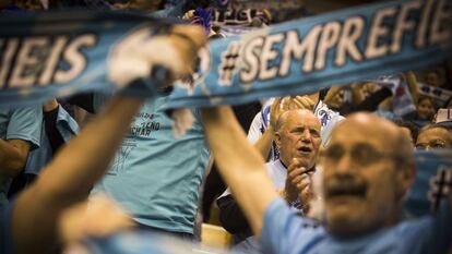 El Pazo es una caldera. La afición está feliz porque 12 años después regresan a la élite tras pasar por momentos muy difíciles que pusieron en peligro la continuidad del club. En esta pequeña ciudad gallega, de 90.000 habitantes, el deporte rey no es el fútbol, sino el baloncesto. El Breogán ha estado 22 de sus 52 años de existencia en la primera categoría y el equipo cuenta con 3.000 abonados. El día del ascenso había 6.000 personas en las gradas. Muchos van en familia. Aficionados de tres generaciones distintas animan al campeón con sus camisetas celestes. En la de José se lee: "Quiero ser tu príncipe azul".