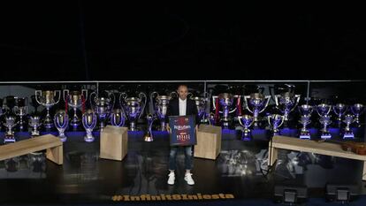 Acostumbrado a admirar su fútbol, esta vez el césped del Camp Nou miró de refilón a Andrés Iniesta. Disfrutó igual. El palco de la casa del Barcelona se vistió de plató de televisión para agasajar al volante. En un acto moderado por Jordi Évole, con todos los títulos que conquistó con la camiseta del Barcelona como testigo (31, solo faltaba la última Liga), Iniesta recibió un nuevo homenaje. Esta vez institucional, bajo el lema #infinit8Iniesta. Distendido, a ratos muy emocionado, otras más divertido, siempre sentido, Iniesta comenzó a decir adiós. Habrá una última función, mañana ante la Real Sociedad. Entonces le rendirá pleitesía, un vez más, la hinchada azulgrana; ayer fue el turno de sus compañeros, entrenadores, directivos, amigos y familiares.