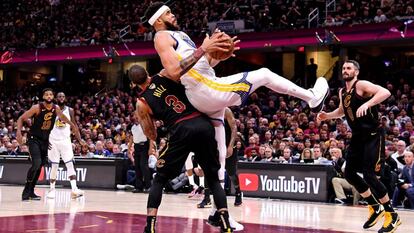 Los Cavaliers reaccionaron y llegaron a remontar (39-38) coincidiendo con su dominio en el rebote, una buena racha de LeBron James y Kevin Love y el mal inicio de Klay Thompson, que sumó tres faltas muy rápido y no anotó en todo el primer tiempo. Pero volvió a anotar un triple Curry y todo el equipo siguió a su estela.