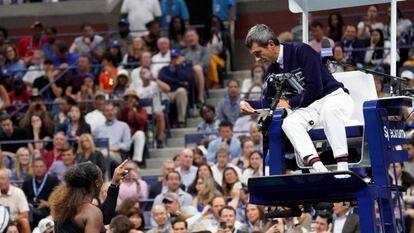 Es Serena Williams desatada, montando un circo. Es Serena Williams fuera de sí, de sus casillas, reventando una raqueta contra el suelo, perdiendo los papeles y desmereciendo a su propia leyenda y el magnífico partido que estaba jugando Naomi Osaka, de solo 20 años, su rival. Es Serena Williams desafiante, embistiendo verbalmente con toda su furia al árbitro portugués Carlos Ramos, que la había sancionado por comunicarse con su banquillo.