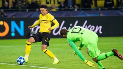 De entrada, no hubo muchos de esas oleadas espasmódicas de los locales porque el Atlético jugó a dormir el partido. No le interesaba un duelo pasado de revoluciones y pretendió atemperarlo con la pelota. Una rara avis en este equipo, que galopa mejor que trota. Si ese era el plan, sorprendió de nuevo la suplencia de Rodrigo, que es el más apto para amasar el juego. Cada vez que Simeone sienta al chico hay un clamor generalizado. No se sabe si estamos ante un caso en el que se impone el régimen cuartelario del técnico, como le sucedió a Griezmann en su primera temporada, o realmente en la pizarra se impone el Tauro que Simeone lleva dentro. Bajo la batuta de Thomas, el Atlético logró imponer el control que buscaba. Domó al Dortmund al menos durante el primer cuarto de hora. No hacía pupa con sus circulaciones, pero al menos contuvo el fútbol-avalancha que temía del Dortmund, rebajado también por su entrenador, que dejó en el banquillo al eléctrico Jadon Sancho, su jugador más desequilibrante junto a Marco Reus. Larsen, el escogido por Sancho, dejó poco. Sin Alcácer, lesionado, Favre decidió jugar sin su otro nueve de referencia, Philipp. Jugó con Götze de falso nueve, para borrarle las referencias a Godín y a Lucas.