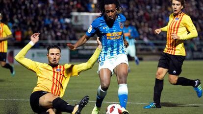 Un doblete de Santi Mina auxilió al Valencia ante el Ebro (1-2) en un partido que logró remontar el conjunto de Marcelino con muchísimo más esfuerzo del previsto. El modesto cuadro aragonés, que tomó prestado el estadio de La Romareda por su mayor capacidad para acoger el encuentro de ida de los dieciseisavos de la Copa, realizó un partido sorprendentemente maduro.