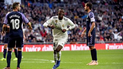 Ensimismado el Real, bastó que el cuadro blanquivioleta diera hilo a Toni Villa para que en Chamartín afloraran la congoja y los silbidos. Villa, un regateador de esos en extinción, comenzó a alborotar a la zaga blanca. Antoñito, el propio Villa y Unal cerraron el primer acto con ocasiones frente a Courtois. El Madrid era el Madrid que llevaba tieso cinco jornadas ligueras.