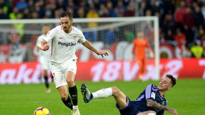 El equipo dirigido por Sergio González tiene la virtud de ser desagradable. Trabajado y ordenado, responde al arquetipo del grupo disciplinado y con las ideas claras. Capaz de presentarse en un estadio tan complicado como el Sánchez Pizjuán para ponerle las cosas complicadas a un Sevilla que intentaba, nada más y nada menos, que el asalto al liderato. El equipo de Machín también tiene sus armas. No jugó el futbolista que siempre le da una salida, Jesús Navas, y el técnico decidió darle descanso a Franco Vázquez para colocar a Roque Mesa en su lugar. Eso provocó el adelantamiento de Banega y, de añadido, cierta confusión a la hora de sacar el balón. Entre el orden del Valladolid, que pobló su centro del campo, y la indefinición de un Sevilla sin las ideas claras, se fue gestando un partido aburrido, de escaso ritmo y pocas llegadas.