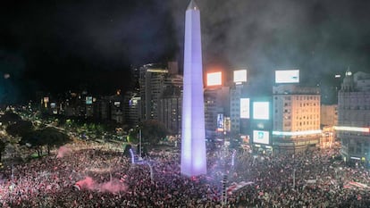 Los recaudos de seguridad daban esta noche resultados. Y en el Obelisco se despertaron las pasiones más primarias. Nada de sofisticación para una noche que quedará en los libros de historia del fútbol. “¡Campeón, campeón!”, “¡Soooy de River, soooy de River!", “¡River Plate, River Plate, dale River Plate!” cantaron los hinchas. La imposibilidad de celebrar en su estadio sacó a todos de sus casas y el cruce de las avenidas 9 de julio y Corrientes, donde está el Obelisco, fueron la tribuna improvisada de miles de fanáticos. La lluvia que cayó de forma intermitente durante todo el domingo se convirtió en chaparrón apenas terminó el encuentro en el Bernabéu. Pero el agua no pudo apagar el fuego de los hinchas. El partido se jugó en Madrid, pero la fiesta del campeón fue en Buenos Aires.
