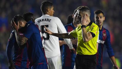El aire de Valencia se cargó de petardazos en el día de la Crida de Fallas y la fiesta se prolongó hasta el estadio del Levante. Si el Madrid hubiera desplegado un juego dominador, el ruido no habría sido tan estruendoso. Pero el equipo de Solari se arrugó y tardó media hora en rematar —gracias a Vinicius— mientras el Levante remataba cinco veces, Morales reclamaba un penalti por un presunto empujón de Carvajal y Roger estrellaba dos tiros en los palos.