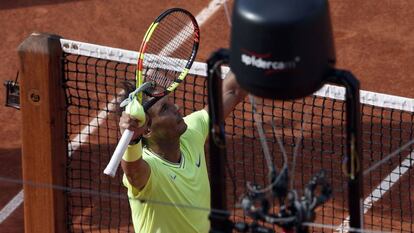 Si el día del estreno ante Yannick Hanfmann se dio un toque en la coronilla con una cámara al salir a la pista, ayer Nadal sufrió otro percance cuando le tocó el cable de la spider mientras celebraba la victoria. Preguntado por esta cuestión, el manacorí deslizó su malestar, aunque de buen tono.