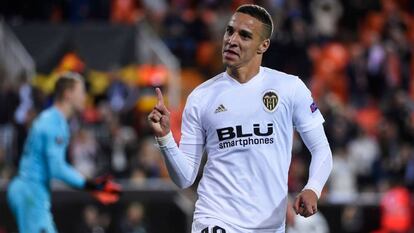 Rodrigo Moreno no deja de ser noticia. Con su traspaso al Atlético de Madrid congelado a la espera de que todas las piezas que está moviendo Jorge Mendes estos días entre Valencia, Atlético y Milan encajen, el delantero hispanobrasileño ha vuelto a ejercitarse con el grupo este jueves en la Ciudad deportiva de Paterna y apunta a entrar en la convocatoria para jugar mañana ante la Real Sociedad en Mestalla. El Valencia va a exprimir el fútbol del internacional español hasta que Mendes cierre el círculo y logre desatascar una operación malabar de mercado que llevaría a Rodrigo al Atlético, a Correa al Milán y a André Silva a Mestalla. Mientras esto no suceda, Rodrigo, que ha trabajado martes y miércoles al margen del equipo, seguirá junto a Marcelino.