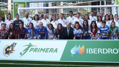 La presentación de la nueva Liga, rebautizada como Primera Iberdrola y tutelada ahora por la Federación, recordó mucho a esa purpurina mundialista. Estuvieron en la sede del principal patrocinador jugadoras y representantes de los 16 conjuntos, el presidente Luis Rubiales, y multitud de medios de comunicación. El reflejo de los nuevos y buenos tiempos para un deporte que vive su propio big bang y que ha adelantado por la derecha al resto de modalidades femeninas en España. “Yo no recuerdo un acto de este tipo. Es muy bonito”, comentaba en pleno cóctel Mariasun Quiñones, la portera de 22 años de la Real Sociedad, vigente campeona de la Copa del Rey. “No nos podíamos imaginar esto hace unos años, pero era el objetivo. No es una moda, hemos venido para quedarnos”, advirtió la rojiblanca Amanda Sampedro, de 26 años, capitana de la selección y una de las referencias del Atlético, el club dominador en el último trienio. Todos hablaron en el evento celebrado este martes a mediodía en Madrid menos el más reclamado, el Tacón, en voto de silencio hasta mediados de septiembre.