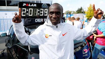 El ensayo de Monza, cuando murió a 26s de la playa, fue el mejor entrenamiento mental para Kipchoge, la prueba que le convenció de que su cuerpo podría dar para conseguirlo. Un año y medio después, el récord mundial de Berlín, que no habría sido posible sin Monza, multiplicó su convencimiento y decidió a Jim Ratcliffe a subvencionarle a través de su marca Ineos. El millonario británico del petróleo solo subvenciona deportes que puedan hacer pensar en energía limpia, ciclismo, vela, y también fútbol. Y una aventura casi circense como las menos de dos horas en maratón, que quiere que sea un canto de esperanza, el ser humano capaz de superar sus límites.