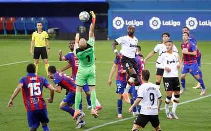En ese bucle de errores y pérdidas de balón en el que estaba girando el Valencia, el Eibar ganó un córner. El centro de Pedro León desde la derecha superó a Gabriel y a Mangala y golpeó en la pierna izquierda de Kondogbia, que marcó en propia puerta. Con tres grandotes en el área y su portero bajo palos, los visitantes encajaron un tanto incapaces de neutralizar la previsible tensión armera en los inicios de partido.