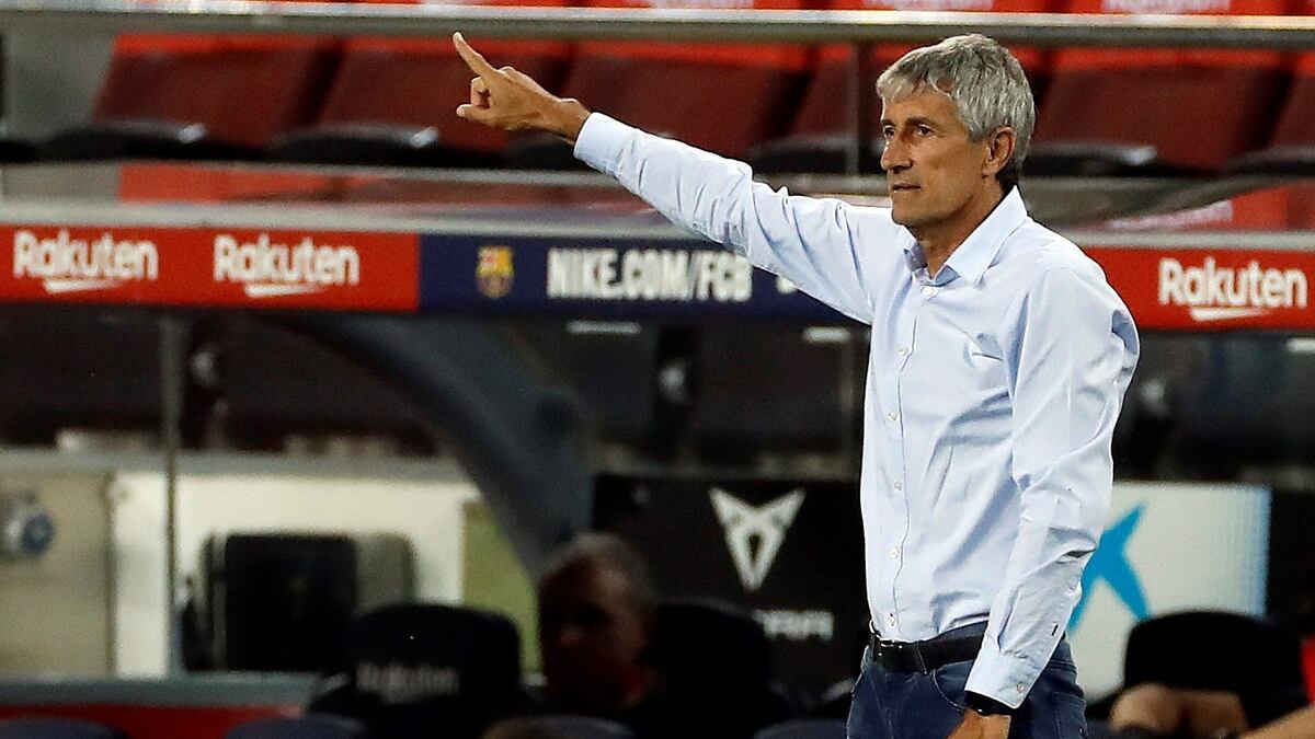 Terminado el partido, Quique Setién se retrepó en el banquillo, con las notas del partido en la mano, junto a su ayudante Eder Sarabia, y resopló. Su rictus era el de un entrenador apurado y agobiado, sabiéndose ya demasiado dependiente de lo que haga el Real Madrid y del ruido que pueda generar en las próximas horas su gestión del partido. Su decisión de dejar en el banco a Ansu Fati y a Griezmann pareció pretender reafirmarla con su tardanza en darles entrada. Si al canterano le puso en liza en el minuto 85, al francés le concedió los cuatro minutos de descuento.