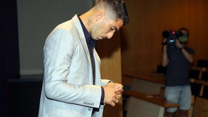 Luis Suárez lo tenía claro. En realidad, lo tiene claro desde siempre, como si formara parte de su ADN: quiere luchar. “Me siento capacitado para competir en la Liga y estoy con muchas ganas. Más después del último año. Seguiré compitiendo, con ilusión y nuevos objetivos”, explicó el nuevo fichaje del Atlético en su despedida del Barcelona. El uruguayo, de 33 años, llegó a la sala de prensa del Camp Nou acompañado por el presidente, Josep Maria Bartomeu. Su familia aguardaba sentada, junto a su íntimo amigo Messi y los otros tres capitanes del Barça: Busquets, Piqué y Sergi Roberto. Tampoco se lo quiso perder Jordi Alba. “Es muy difícil”, se arrancó Suárez, entrecortado por las lágrimas; “dejo muchos amigos aquí. Me quedo con todo lo lindo. Que mis hijos me vieran levantar trofeos, celebrar goles y jugar al lado del mejor de la historia. Agradecer a la afición todo el cariño, que me valora, y eso jamás lo voy a olvidar. Tendrán un culé más esté donde esté”.