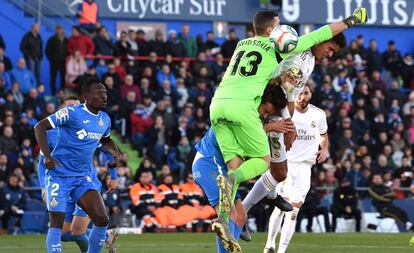 Se atasca ahora el Madrid en la salida del balón, la presión del Getafe es asfixiante.