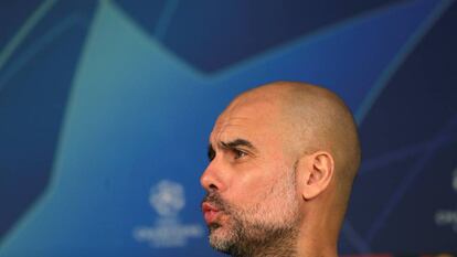 Pep Guardiola revisaba la platea de butacas con el ceño fruncido. Estudiaba las caras y procuraba controlar sus emociones según respondía, más preocupado por escamotear información que por revelarla. En la que fue su novena presencia como técnico del equipo visitante desde 2009, la sala de prensa del Bernabéu debió resultarle extrañamente familiar al entrenador del City cuando se presentó a ofrecer la conferencia protocolaria de la víspera de la ida de los octavos de final de la Champions. El tiempo se le pasó rápido mientras ingeniaba subterfugios. Cuando el jefe de comunicación del City anunció a la audiencia que le quedaban solo dos cuestiones por plantear, el periodista elegido le recordó a Guardiola que en 2010, sentado en la misma silla en la previa de unas semifinales de Champions calificó a Mourinho de “puto amo”, y le preguntó por su opinión de Zidane, que por la mañana le había elogiado como “el mejor entrenador del mundo”. Entonces Guardiola se rascó la nuca y despachó lo que fue su mensaje más elaborado.
