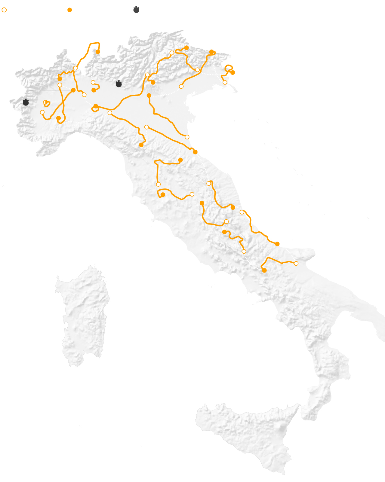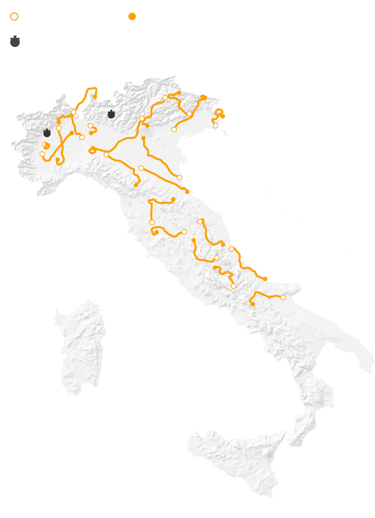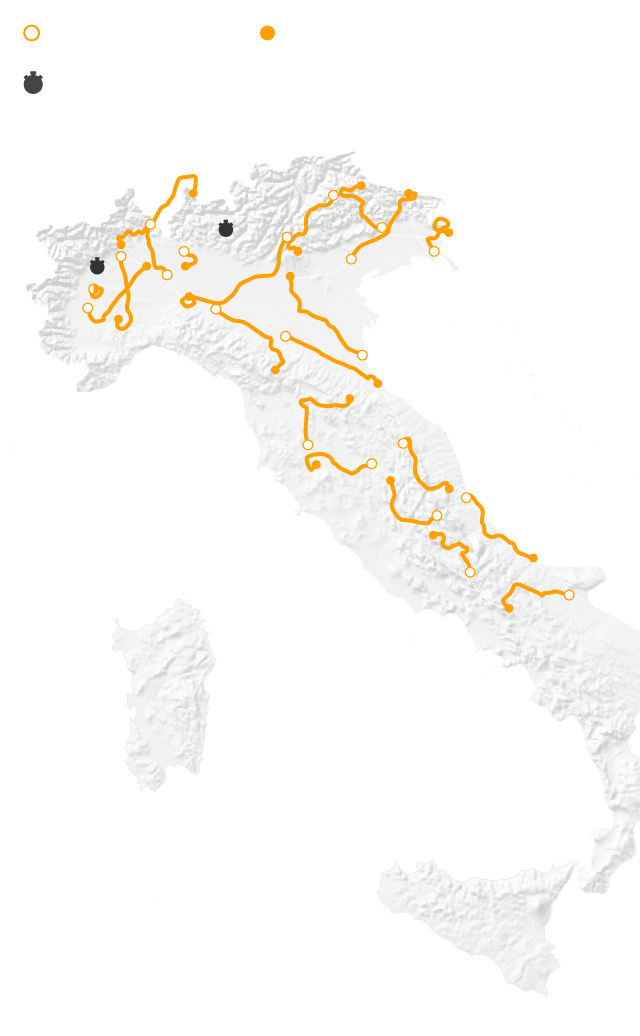Aunque, por su profusión de llegadas en alto diseminadas durante las tres semanas (tercera etapa, Sestola, la estación de esquí de Bolonia donde aprendió el deporte Alberto Tomba y en la que en 2016 consiguió su primera victoria Giulio Ciccone, una de las esperanzas locales; sexta, San Giacomo, en los Apeninos de las Marcas, junto a Ascoli Piceno; en la novena, más al sur, la estación de esquí de Campo Felice, cerca de L’Aquila, en los Abruzos; en la 14ª, ya en el Véneto, el Zoncolan, pero por la vía fácil, la de Sutrio, la que inauguró Simoni en 2003; la 16ª será el gran tappone dolomítico, con Marmolada, Pordoi y Giau antes de bajar a Cortina d’Ampezzo, donde serán los Juegos de Invierno del 26; en la 17ª, ascenso al Sega di Ala, junto al Garda, al norte de Verona; en la 19ª, será la llegada a Alpe di Mera, estación de esquí en el Piamonte, y en los Alpes lombardos y suizos se desarrollará la 20ª etapa, la segunda etapa reina, con San Bernardino y Splugenpass, en el Ticino, antes de terminar en el Alpe di Motta, de nuevo en Italia, sobre el lago de Como), el Giro del 21 huele un poco al estilo Vuelta a España, la longitud de algunas etapas (más de 200 kilómetros la dolomítica y la del Zoncolan) y la altura de sus montañas (más de 2.000m los tres gigantes dolomíticos de la 16ª y los dos pasos suizos de la 20ª) son elementos que, evidentemente solo se pueden encontrar en una carrera como la italiana, en la que la veneración a su pasado, y al esfuerzo loco de sus campeones, forman parte de su carácter. En total serán 21 etapas, 3.450 kilómetros (164 kilómetros de media) y 46.900 metros de desnivel positivo (2.233 metros por etapa).