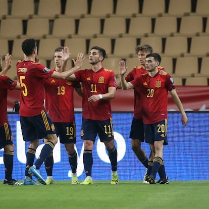 Sobre el campo se buscaban Pedri y Jordi Alba, la mejor pareja de baile de esta Roja en tránsito. Al otro costado sumaba menos Marcos Llorente, otra vez lateral ortopédico, lo que deja más varado al explosivo volante delantero del Atlético. Pero así ha decidido auditarle el seleccionador. Con Kosovo abrigado en su cenagosa retaguardia y sin aparente perspectiva de echar un vistazo a Unai Simón, a España le faltaba marcha. Algo de frenesí, de desborde, de atrevimiento. Mucho fregado por la periferia del área visitante, pero pocos fusileros. Apenas Alba y Morata probaron a Uljkani, meta kosovar. Una España en la sala de espera, reducida al formalismo hasta que la lógica se impusiera a la ilógica. Así fue. Pero no del todo.