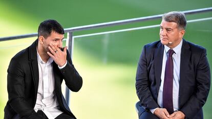 Con un discurso entrecortado, sonándose la nariz y limpiándose las lágrimas, Kun siguió: “Estoy muy orgulloso por mi carrera, feliz. Siempre soñé con jugar al fútbol desde que con cinco años toqué una pelota. Mi sueño era jugar en Primera, nunca pensé en llegar a Europa. Así que gracias a Independiente (2003-2006), también al Atlético (2006-2011) porque apostó por mí con solo 18 años, a la gente del City (2011-2021), que saben lo que siento, donde dejé lo mejor. Y también al Barça (2021), que es increíble, uno de los mejores equipos del mundo. Y claramente a la selección argentina que es lo que más amo”. Laporta recogió el testigo antes de hacer mutis por el foro porque era el acto del Kun. “Nos hemos quedado con las ganas en el Barça, pero has tomado la decisión correcta. Has sido un jugador de reconocimiento mundial, un goleador nato. Pero dejas también tus amistades, tu simpatía… Ojalá hubieras llegado antes, como cuando jugabas en el Atlético porque eras la envidia de todos”, resolvió el presidente azulgrana.