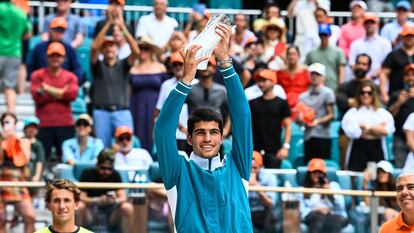 El tenis presiente que está ante un giro definitivo del relato. No ya por lo que pueda deparar el futuro, que nunca se sabe, ni tampoco por el hecho de que el murciano, 18 años y 333 días, supere la precocidad de Novak Djokovic, hasta ahora el campeón más joven en Miami, con 19 años y 314 días en la edición de 2007; ni siquiera porque el chico de El Palmar haya logrado lo que se les negó antes a Sergi Bruguera, Carlos Moyà, David Ferrer o hasta al mismísimo Rafael Nadal, privado hasta cinco veces del éxito, ni porque sea ya el tercer ganador más precoz de un Masters 1000, solo por detrás de Michael Chang (18 años y 157 días en Montreal 1990) y el gigante de Manacor (18 y 10 en Montecarlo 2005); tampoco porque esté ya al borde del top-10 –el título le sitúa undécimo en el ranking– ni porque a su edad haya levantado ya tres trofeos en la élite (Umag y Río de Janeiro previamente).