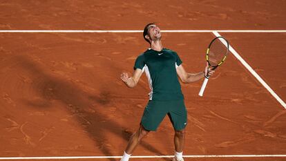 Cuando Alcaraz abre brecha con un 3-0 a su favor, el ateniense (23 años) se enerva, se marcha a la caseta y al volver, recibe dos puntos de sanción. A partir de ahí desconecta, se va del partido y el español sigue deshilachándole para remachar una jornada que ha comenzado a las doce del mediodía, que termina a las once entre júbilo y en la que también ha triunfado Pablo Carreño, citado en la otra semifinal (13.30) con Diego Schwartzman tras deshacerse de Lorenzo Sonego (6-2, 5-7 y 6-2) y de Casper Ruud (4-6, 7-6(8) y 6-3).