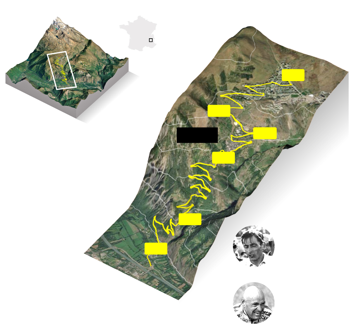 En las tres ganó Fausto Coppi, il campionissimo de los años 50, y no hubo, quizás, un ciclista tan grande como él hasta Eddy Merckx. De la mano de un ciclista mítico nacía el mito de Alpe d’Huez, aunque por entonces nadie era consciente de ello, mucho menos el jefe del Tour, Jacques Goddet, quien escribió: “Nada nos incita a militar por las llegadas en alto”. La experiencia del 52 se quedó ahí. Las dos siguientes llegadas en alto del Tour fueron sendas contrarreloj individuales al Mont Ventoux (1958) y Puy de Dôme (1959). Alpe d’Huez debió esperar 17 años más. Hasta 1976 no regresó el Tour a la montaña de las 21 curvas.