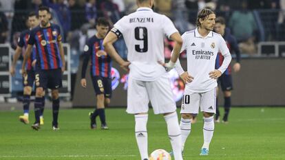 El Barcelona pasó por encima de un náufrago. Nada grave si, como el 0-4 del año pasado en el Bernabéu, que al menos no provocó la pérdida de un título, el Madrid se lo toma de manera anécdotica y sigue faenando en marea alta esperando a Moby Dick. Pero no es el primer partido, ni el segundo ni el tercero que los blancos, desde noviembre, se marcan de esta guisa. Vinicius solo no puede con todo, y no será porque no lo intenta. El Madrid repite errores, hay un patrón de juego reconocible que le ha hecho perder ya la Supercopa española y el liderato de la Liga. La imagen da igual: la imagen se puede recuperar en primavera. Lo que no da igual es el estado depresivo de un equipo que, creíamos, jugaba los últimos partidos en modo semivoluntario de pachanga playera y resulta que es porque no da. Lo mejor que le puede pasar es que esta final sea la bengala de salvamento.