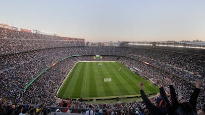 “Es más entretenido que el fútbol. Hay reglas que no tiene el fútbol de siempre, hay más interacción y es más accesible. Es una buena idea y espero que se haga más veces”, decía Alex, de 13 años. Junto a él, su padre, Marc, de 38: “Creo que le aporta valor al fútbol. Atrae a la gente joven y les llama más la atención este tipo de competiciones que un partido de 90 minutos en el que no pasa nada”. Ellos, como muchos espectadores en el campo, llevaban las bufandas de sus equipos, como si fuera un partido de fútbol al uso y no una competición que cuenta con reglas alternativas y diferentes comodines durante los encuentros. En esta ocasión, 2,1 millones de personas siguieron la final four por Twitch, YouTube y TikTok, según la organización, ligeramente por encima del día de Ronaldinho.
