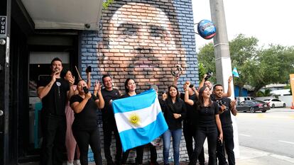 En ningún lugar de la ciudad ha sido estos días más palpable y concentrada la alegría por la llegada de Messi que en la zona conocida como Little Argentina, en North Beach, donde la vida social se articula en torno a dos establecimientos con señera, la Buenos Aires Bakery y el bar Manolo, donde se concentraron el pasado diciembre las multitudinarias celebraciones por la victoria argentina en el Mundial. El jueves por la tarde, un joven llamado Luciano se disculpaba por no haber estado en aquel festejo mostrando en su móvil su imagen en la final de Qatar, la de verdad, mientras veía por los grandes televisores del Manolo un partido de su equipo, el San Martín de Tucumán, “el de la hinchada más temible del mundo”. “El Inter de Miami”, dijo, “no es un gran conjunto, pero ahora nos toca hacernos fanáticos a todos. El pibe ha venido aquí a retirarse, y tenemos que respetarle eso”.