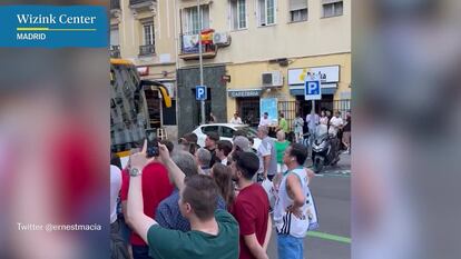 “Hijos de putas”, “perros”, “cabrones”, “¿cuánto habéis pagado los árbitros de hoy?”, “joderos”, fueron sólo algunos de los cánticos que tuvo que escuchar la plantilla del Barcelona a su llegada este martes por la noche al Wizink Center para disputar el tercer partido de la serie de las finales de la Liga ACB. Había un grupo integrado por decenas de hinchas madridistas aguardando al autobús. Que no callaba. Los insultos no cesaron en los minutos que tardaron en bajar y entrar al estadio los jugadores del Barça. También se oyó un “rata apestosa” y James Nnaji, pívot del equipo azulgrana, escuchó varias veces cómo le llamaban “negro”, además de “negro de mierda”.