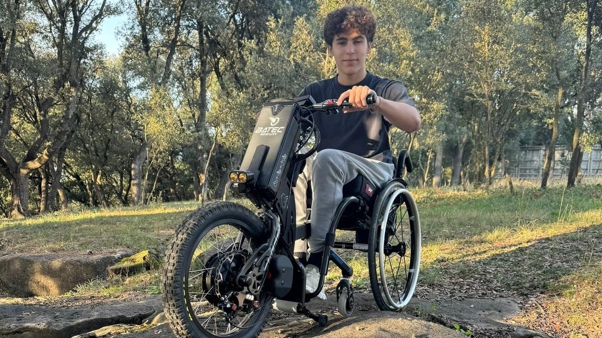 El piloto de motocross, de 16 años, sufrió una caída en mayo y ahora camina con un aparato robótico que le permite ponerse en pie