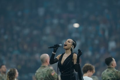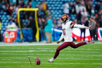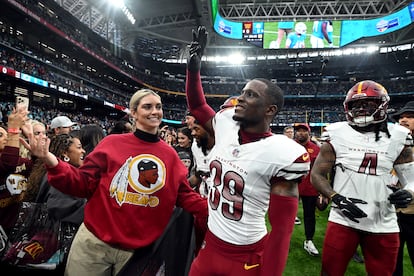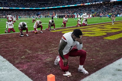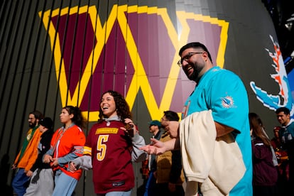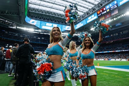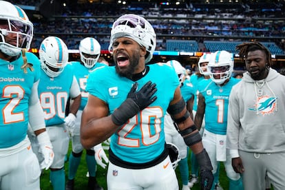 La cantante Karina Pasian canta el himno estadounidense.JUANJO MARTIN (EFE)Deebo Samuel, de los Washington Commanders, reza con sus compañeros de equipo antes del partido de fútbol americano.Bernat Armangue (AP)Espéctaculo de animación antes del partido de liga regular de la Liga de Fútbol Americano (NFL).JUANJO MARTIN (EFE)El jugador de los Miami Dolphins, en el centro, en un momento del calentamiento.Manu Fernandez (AP)Jeremy Reaves, de los Washington Commanders, saludo a los seguidores del estadio Santiago Bernabéu antes del partido.Denis Doyle (Getty Images)Seguidores de fútbol americano en las inmediaciones del estadio Santiago Bernabéu.Ana Beltran (REUTERS)El presidente del Real Madrid, Florentino Pérez, saluda a los aficionados.Bernat Armangue (AP)El jugador de los Washington Commanders Matt Gay calienta antes del inicio del encuentro en el Santiago Bernabéu.AFP7 vía Europa Press (AFP7 vía Europa Press)Desde la izquierda, José Luis Martínez-Almeida, alcalde de Madrid; Florentino Pérez, presidente del Real Madrid, e Isabel Díaz Ayuso, presidenta de la Comunidad de Madrid.Denis Doyle (Getty Images)El exfutbolista y comentarista de televisión José María Gutiérrez 'Guti'.JUANJO MARTIN (EFE)Los jugadores de los Washington Commanders John Bates (a la izquierda) y Noah Igbinoghene calientan antes del inicio del encuentro.
