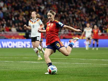 Kiko Huesca (EFE)Rebecca Knaak controla el balón, durante el partido de vuelta de la final de la Liga de Naciones.Angel Martinez (Getty Images)Disparo de Esther González durante el primer tiempo.Violeta Santos Moura (REUTERS)La defensa española Olga Carmona y la centrocampista alemana Selina Cerci, durante el partido de vuelta de la final de la Liga de Naciones femenina, que España y Alemania disputan este martes en el estadio Metropolitano en Madrid.