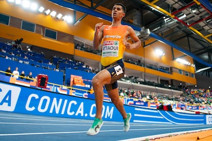 Si la competición de atletismo no fuera un invento anglosajón, en vez de estar divididas las distancias (200m, 400m, 800m…) en fracciones de la milla disputadas en pistas de 400m, los óvalos medirían 500m y las longitudes de las carreras serían fracciones de 1.000m, siguiendo el sistema métrico decimal, y entonces, quizás, Moha Attaoui sería un atleta más feliz aún. “Mi distancia favorita, la que mejor me va son los 1.000m”, dice el atleta de Torrelavega, el español de más nivel en la pista. Nacido en la localidad marroquí de Béni Mellal, Attaoui llegó a España de niño, en brazos de su madre, y a los 24 años ha sido ya quinto en unos Juegos y en unos Mundiales en 800m (su mejor marca en las dos vueltas a la pista es de 1m 42,04s, la 12ª de la historia), y ha corrido los 1.000m (distancia no olímpica) al aire en 2m 12,25s, la tercera mejor marca de nunca. Y este viernes (21.10, streaming en RTVE Play), en la pista cubierta de Gallur (Madrid) intentará igualarla, o al menos bajar de 2m 14,20s para batir el récord del mundo bajo techo y en pista de 200m. Después de los de Grant Holloway en 60m vallas (7,29s en 2021) y Yulimar Rojas en triple salto (15,43m en 2020), sería la tercera plusmarca mundial conseguida en la instalación madrileña durante la celebración de su mitin en febrero.