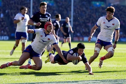 El hambre con el que salió Escocia no tardó en dar réditos. La primera internada en campo francés, con una gran cadencia de pases, terminó en manos de Finn Russell, que convirtió sus manos blandas en un señuelo perfecto para que el defensor fuera a por él y abriera la puerta. El apertura fue ágil para recoger el oval y asistir a la carrera de Darcy Graham, que corrió al encuentro como si ya hubiera visto la película para ensayar. Francia reaccionó con dominio territorial, pero sin sometimiento ante un rival ordenado que se plegaba, pero no se rompía.