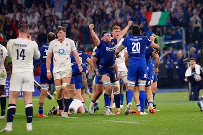 Hicieron falta 33 intentos, pero Italia tumbó con justicia este sábado a Inglaterra por primera vez. Un hito que, lejos de ser un accidente, representa la guinda a los cimientos del último lustro. La victoria por 23-18 en el Olímpico de Roma ante el único miembro del Seis Naciones al que aún no había derrotado fue obra de una defensa ordenada y de dos destellos de su estrella, Tommaso Menoncello, uno de los mejores centros del mundo. El desplome inglés, que cae por tercera jornada seguida en el que está siendo su peor invierno del siglo XXI, y el auge italiano, una selección que llegó a perder 36 partidos seguidos en el torneo entre 2015 y 2022, coincidieron en 80 minutos para la historia.